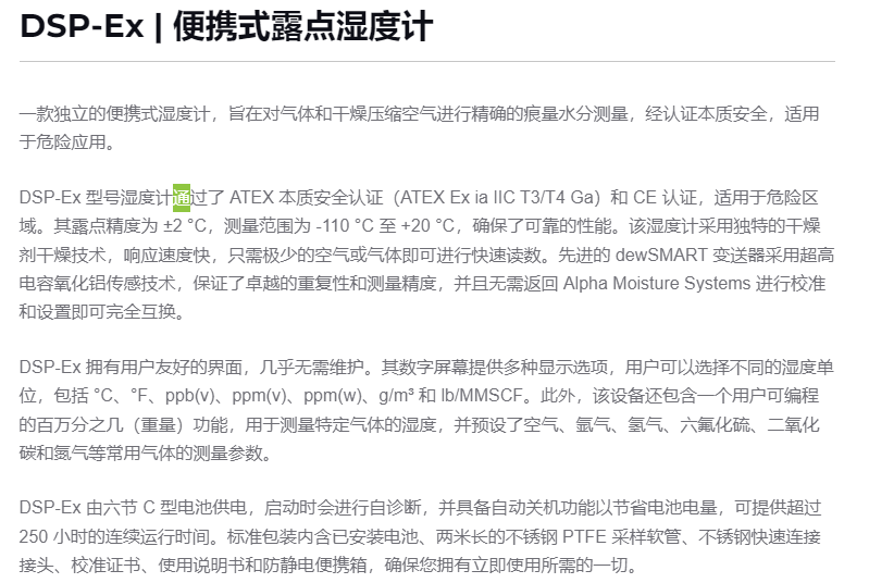 alpha 便携式露点湿度计DSP-Ex系列
